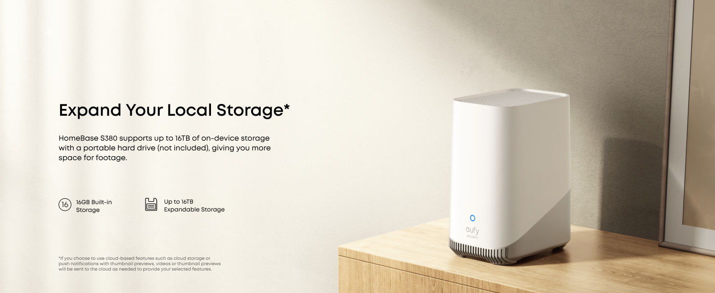 Better with HomeBase S380: Unlock BionicMind™ AI to instantly differentiate family from strangers. With 16GB of built-in storage that's expandable up to 16TB, rest easy knowing you can securely store hours of footage. Before setup, update your HomeBase S380 to version V3.7.2.8 or later and use the latest eufy app version; otherwise, eufyCam S4 won’t support 24/7 recording or Snapshot.