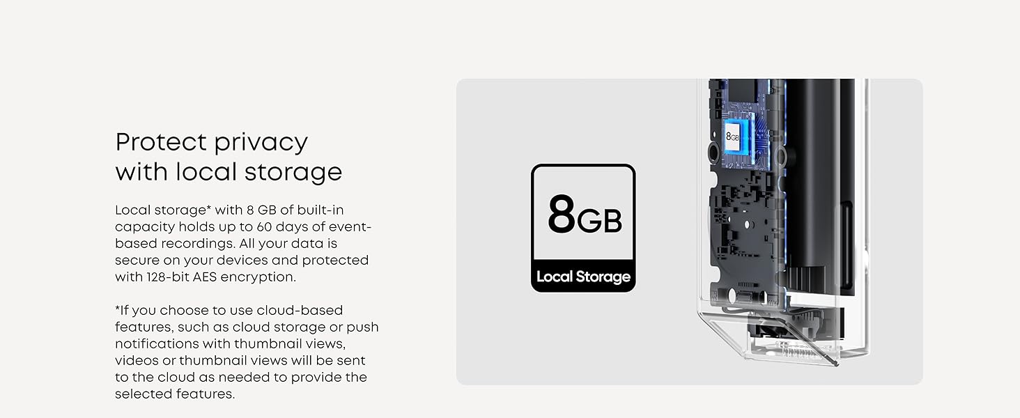 - Dual Cameras, Double Security: Two cameras work together to deliver advanced viewing. The front-facing camera focuses on people, while the downward-facing camera fills in the gaps with a view of the floor in front of your door.