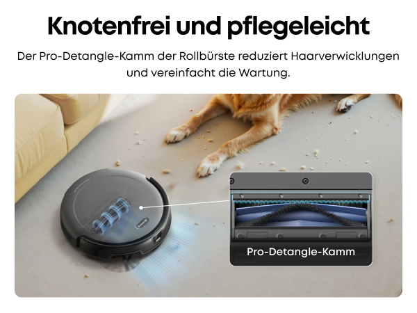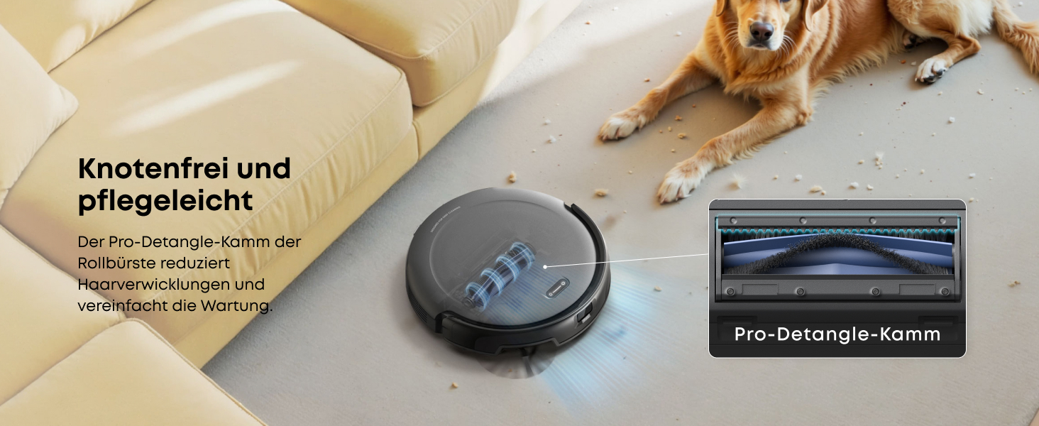 Starke Saugkraft für Tierhaare und mehr:Die 4.000Pa Saugleistung und die Rollbürste entfernen zuverlässig Tierhaare, Schmutz und Krümel.* *Die Leistung kann je nach Bodenart und Verschmutzungsgrad variieren.