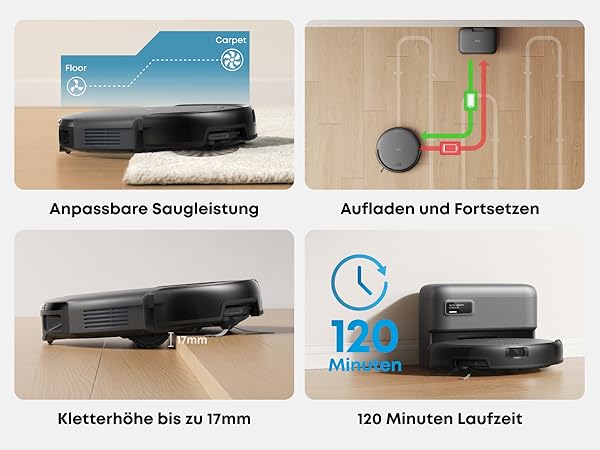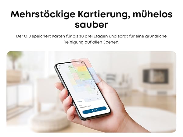 Präzise Navigation mit smarter Technologie:Dank Punktlaser- und Multi-Infrarot-Technologie navigiert der C10 effizient, weicht Hindernissen aus und sorgt selbstständig für eine gründliche Reinigung.