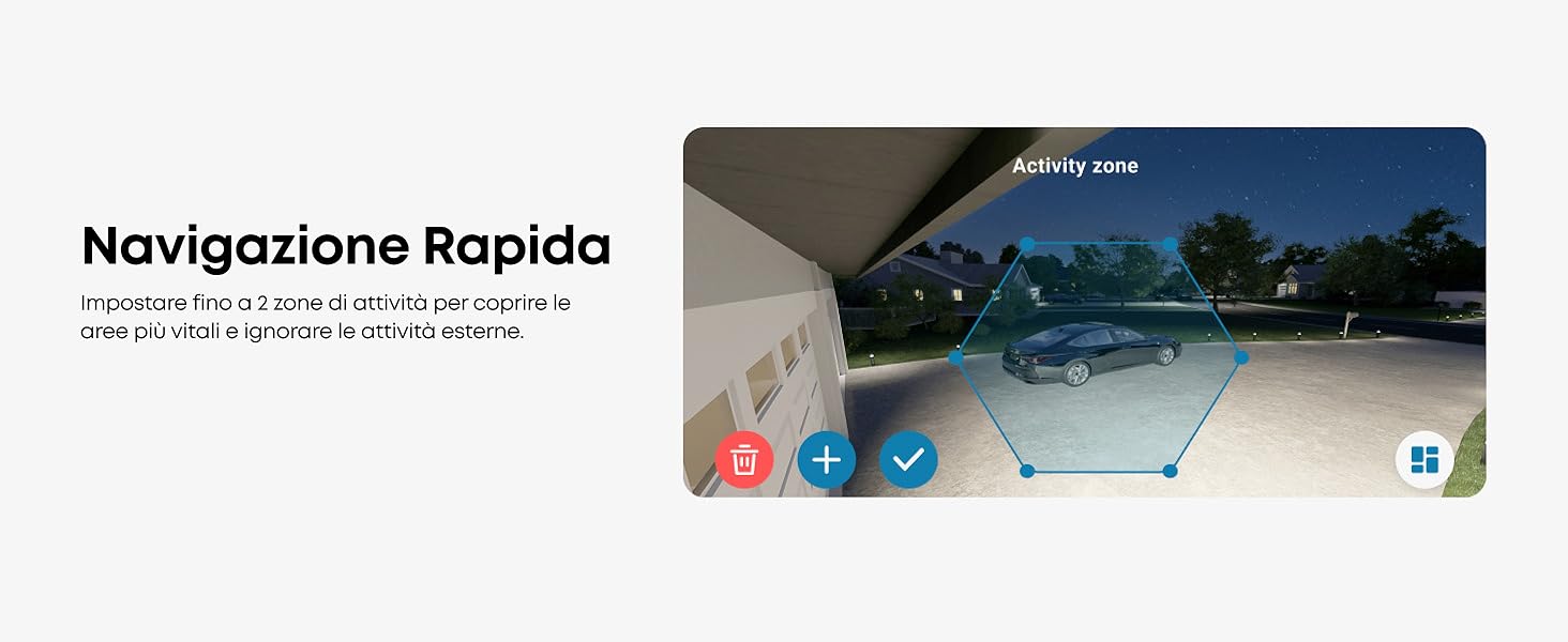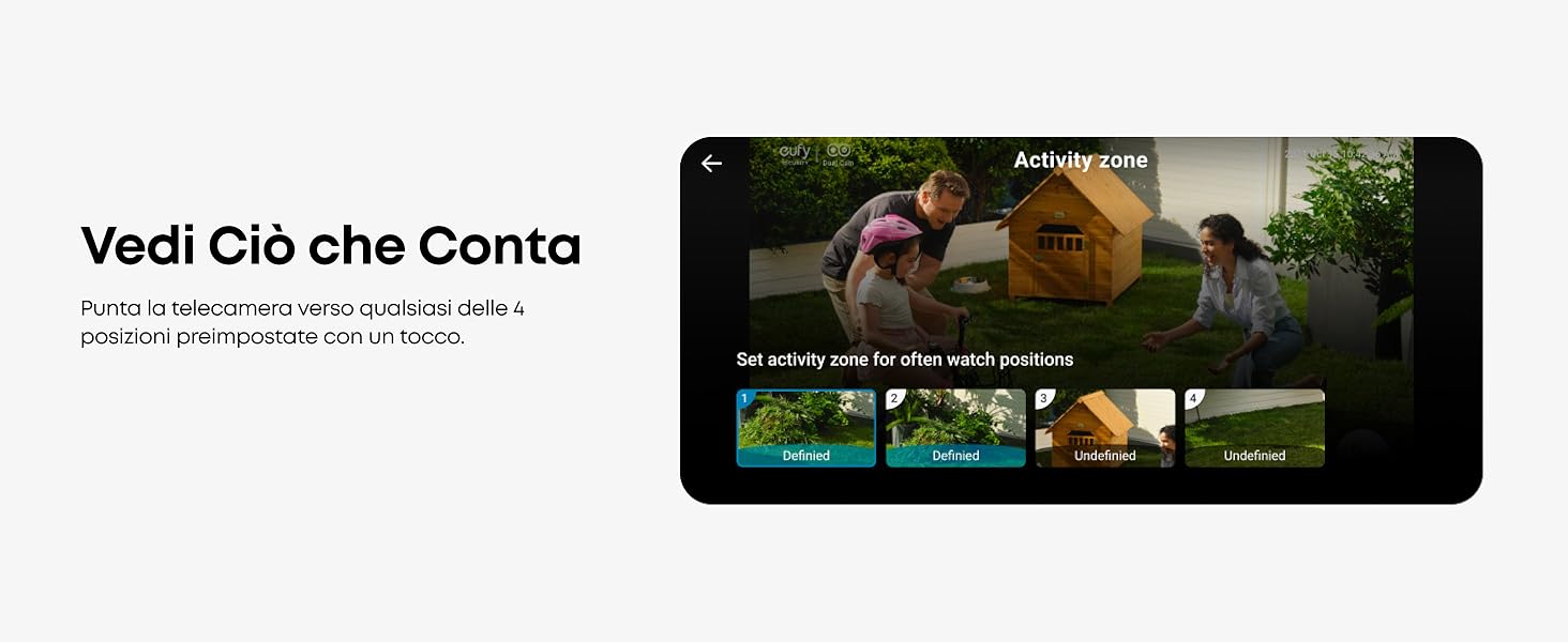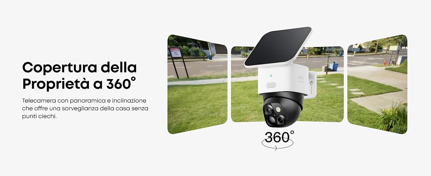 Guardiano a 360°, senza angoli ciechi: Dì addio agli angoli ciechi con una copertura domestica completa. Goditi la sorveglianza a 360°, controlla il portico, monitora il cortile e tieni d'occhio il vialetto con facilità.