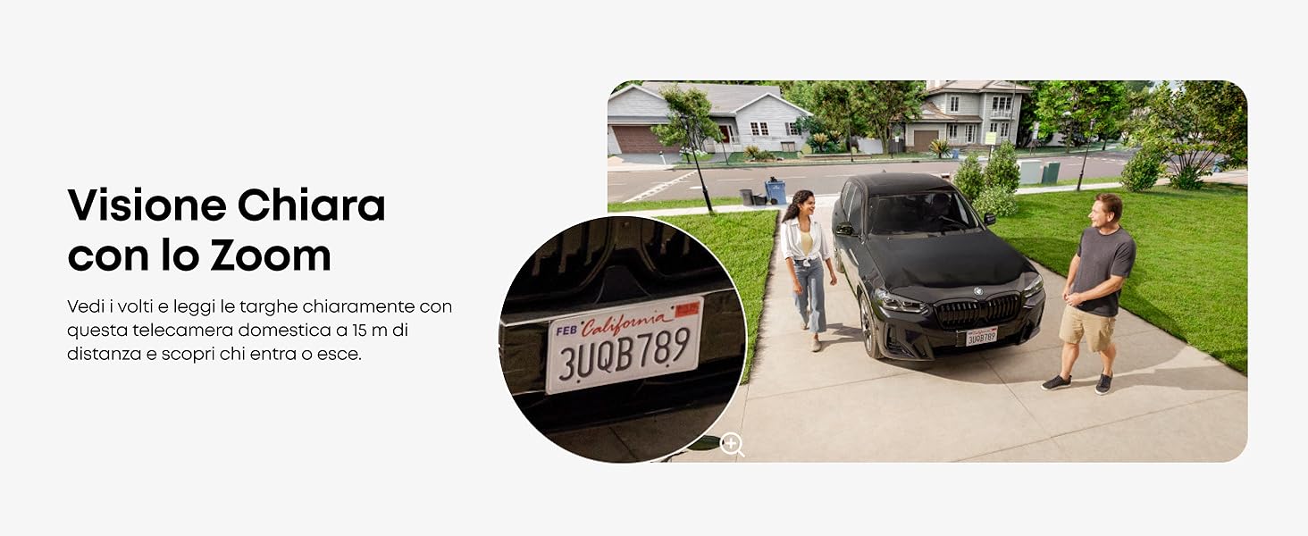 Chiarezza migliorata della doppia fotocamera a 50 piedi: Cattura ogni evento che accade in casa tua con una risoluzione 3K ultra nitida. Scopri esattamente chi si sta avvicinando a casa tua con zoom 8×.