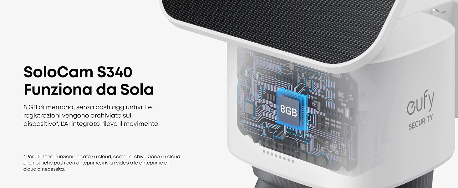 *Con una luce solare ottimale, il pannello solare rimovibile può raccogliere e immagazzinare da 800 a 1.200 mAh al giorno. S340 SoloCam utilizza da 100 a 200 mAh durante un giorno e una notte di utilizzo medio.