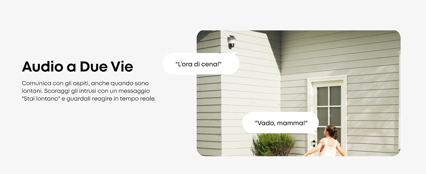A energia solare, installalo una volta e funzionerà per sempre*: Prova la massima tranquillità con questa telecamera di sicurezza a energia solare, facile da configurare e sempre accesa, grazie al pannello solare rimovibile.