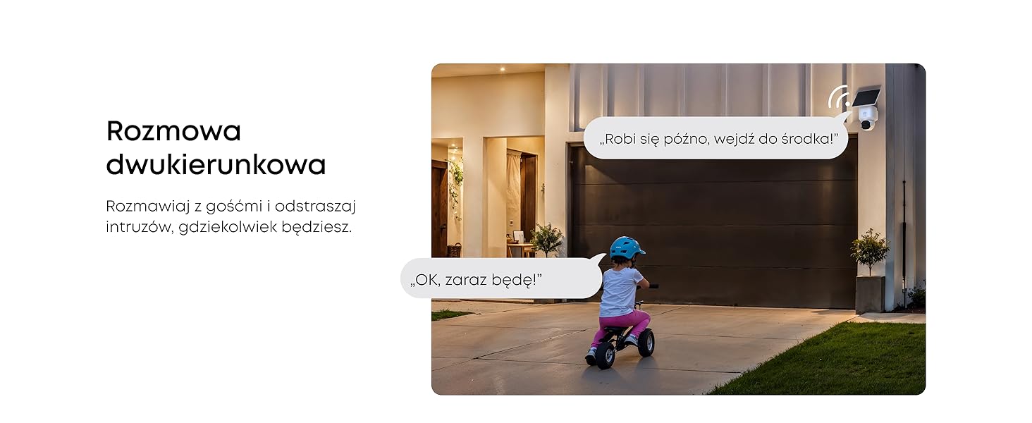 - Ochrona 360° bez martwych punktów: Szerokie pole widzenia dla płynnego nadzoru – niezależnie od tego, czy jest to przy wejściu, w ogrodzie czy na podjeździe – wszystko pozostaje widoczne.