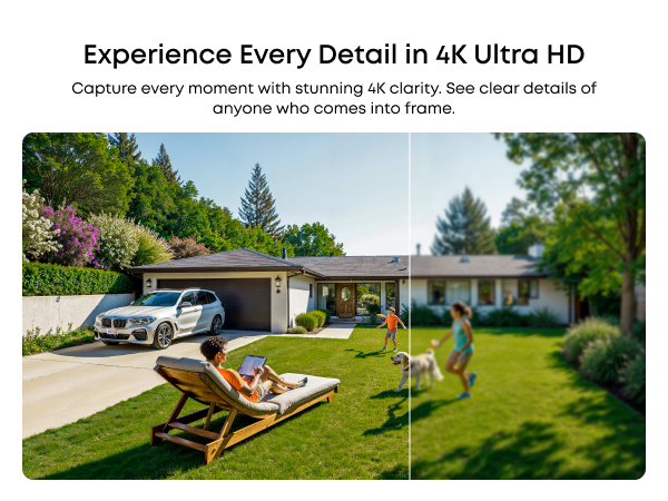 Ultra HD 4K Clarity: Features true 4K UHD resolution to capture clear, detailed visuals around your home, delivering sharp definition up to 33 ft (10 m) away.
