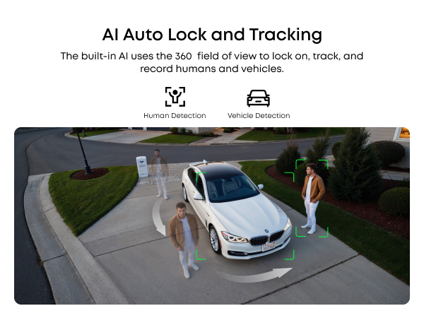 - AI Motion Detection and Smart Tracking: Built-in AI instantly detects and automatically tracks people, vehicles, or important events within view, minimizing false alarms and keeping your property secure.