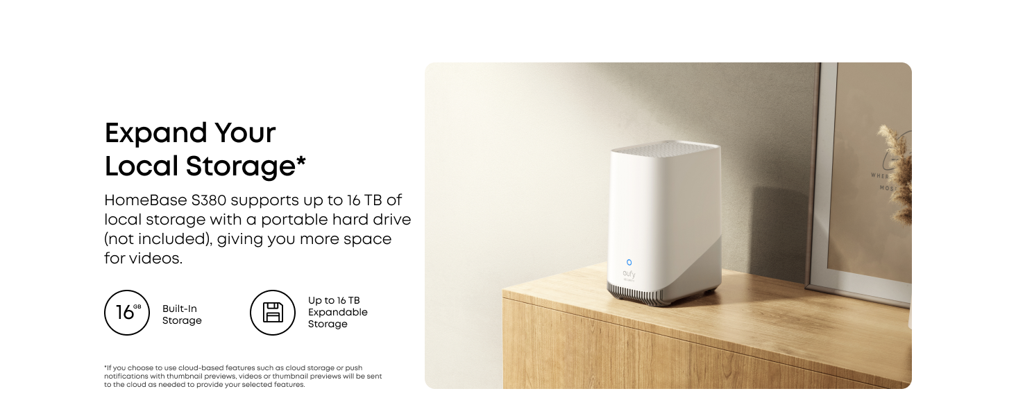 HomeBase™ 3 Included: HomeBase™ 3 comes with 16 GB built-in storage, expandable up to 16 TB, and supports continuous recording even during network outages. We recommend using the included HomeBase™ 3 for best performance. If you already have a HomeBase™ 3, please update to firmware V3.6.9.0 or later, and update to app V5.0.80 or later.