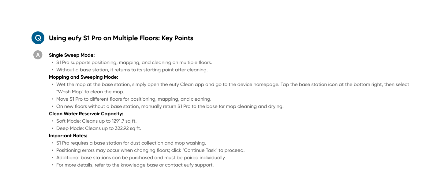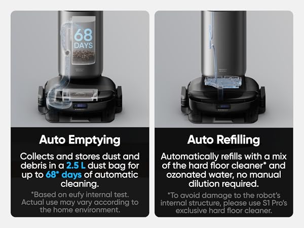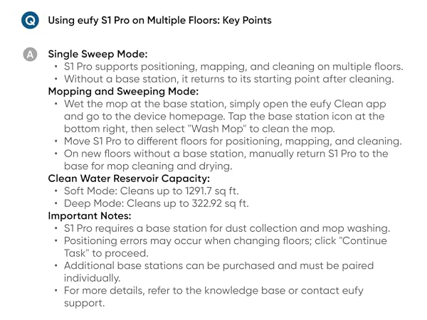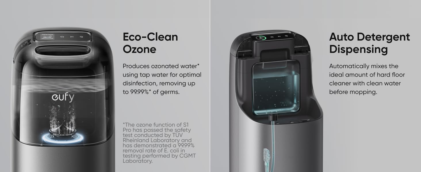 - Automatic Base Station Mop Washing: S1 Pro autonomously returns to its base station to wash the mop pad, ensuring a clean mop at the start of each cleaning session and consistent results.