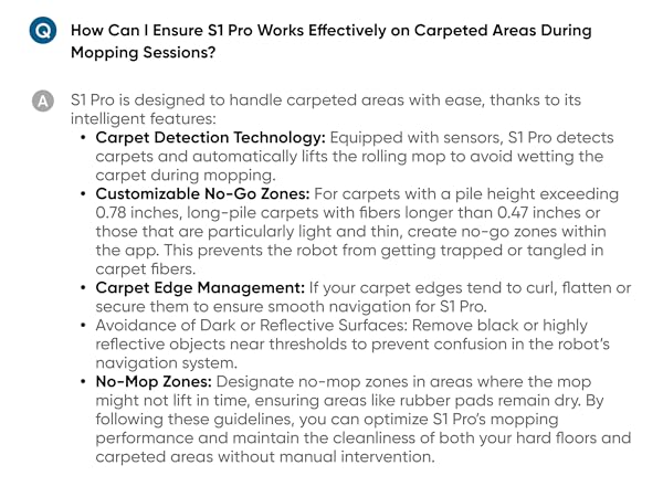 S1 Pro is designed to handle carpeted areas with ease, thanks to its intelligent features:
