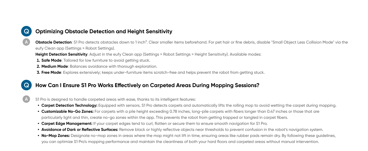 - Carpet Edge Management: If your carpet edges tend to curl, flatten or secure them to ensure smooth navigation for S1 Pro.