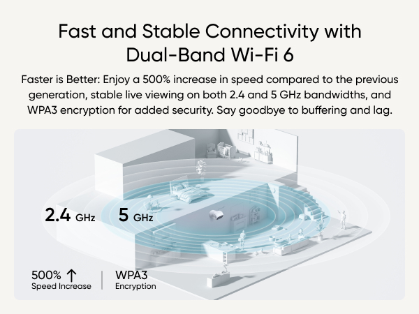 Yes, Indoor Cam S350 supports Dual-Band Wi-Fi 6 for faster and more stable connectivity, and WPA3 encryption for added security. You can select 5 GHz for faster, smoother live views, or use 2.4 GHz for extended range. A Wi-Fi 6 router is recommended for optimal performance.