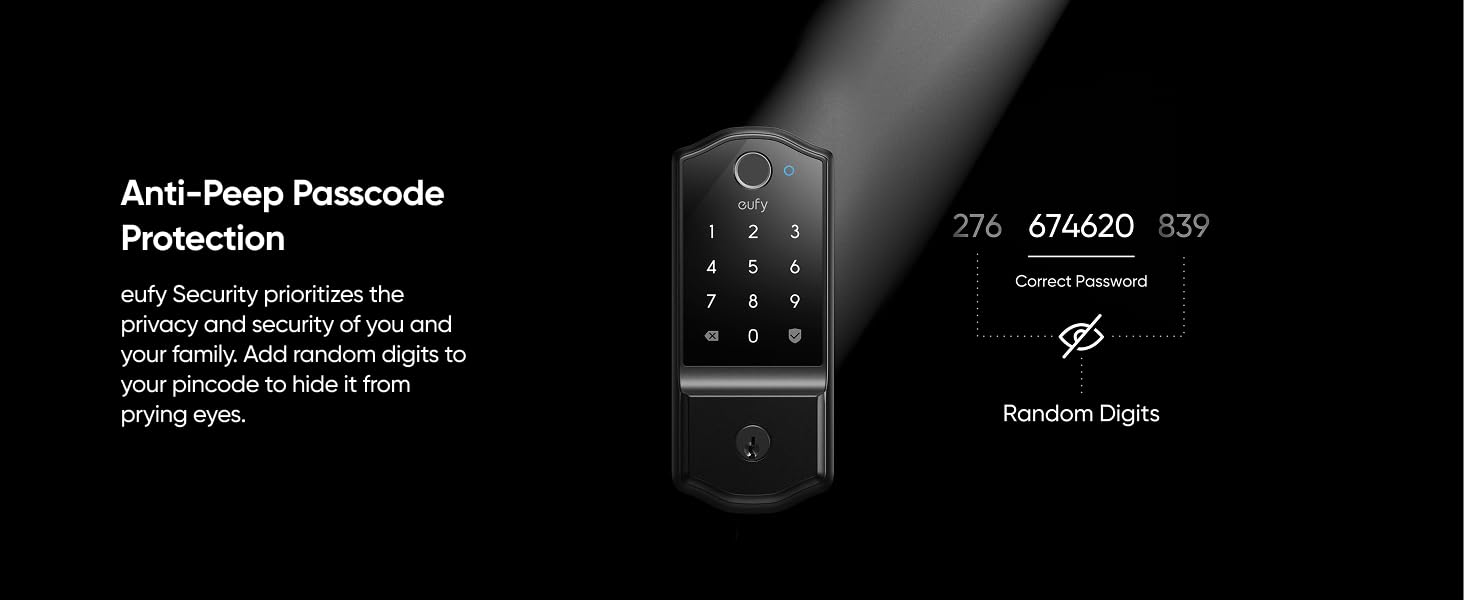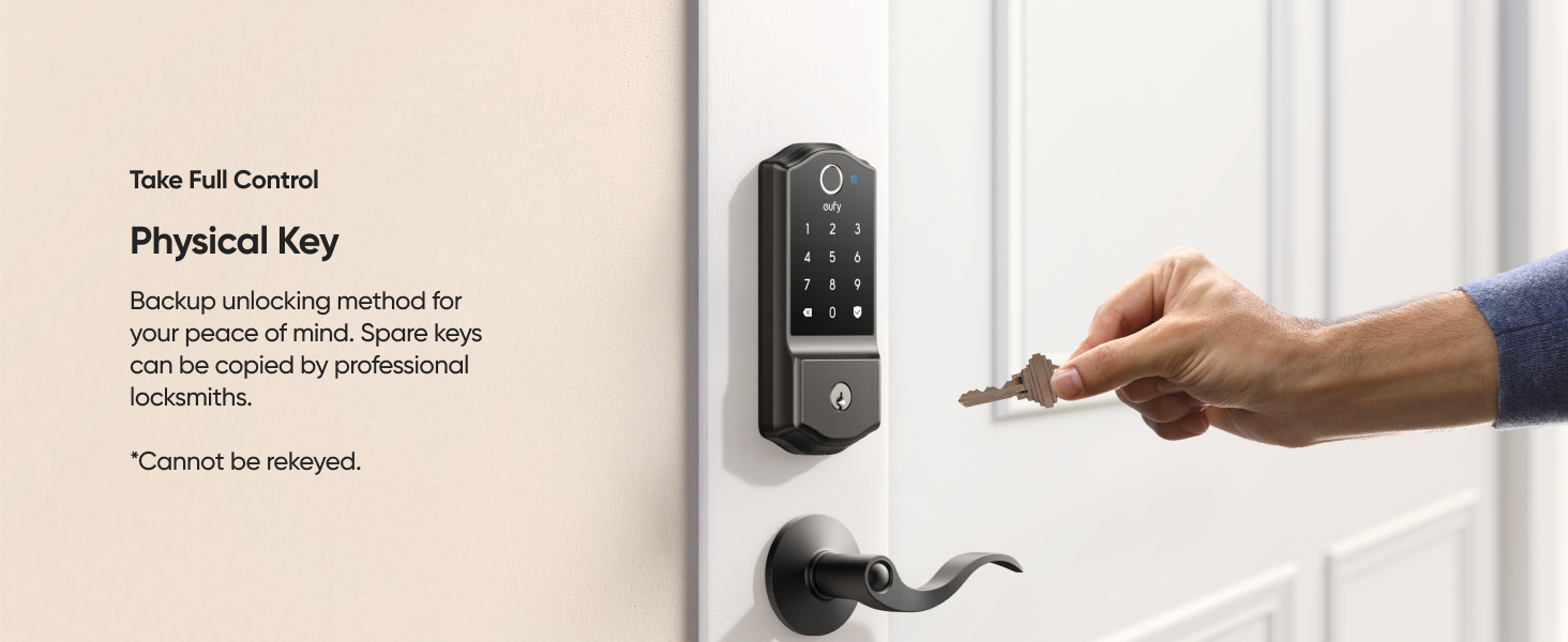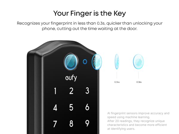 5 Ways to Unlock: Unlock with a touch for less than 1s with fingerprint lock. You can also open your front door lock via the eufy Security app, using the keypad or physical key, from Apple Watch, or use your voice with Alexa/Google Voice Assistant.
