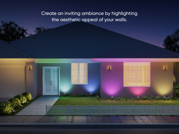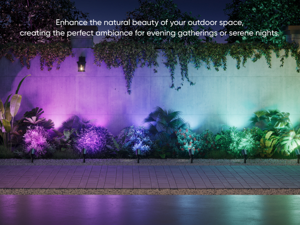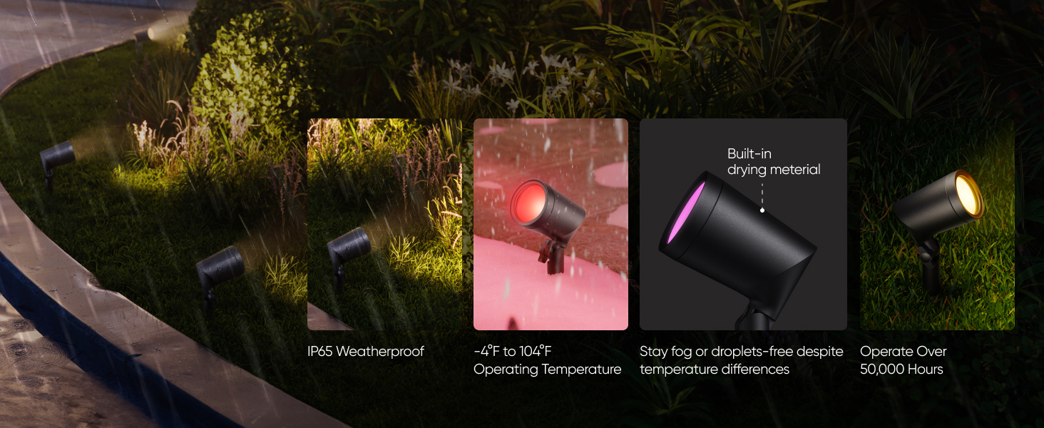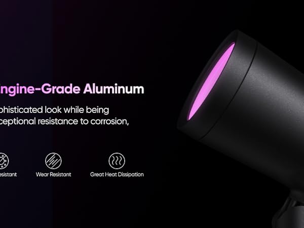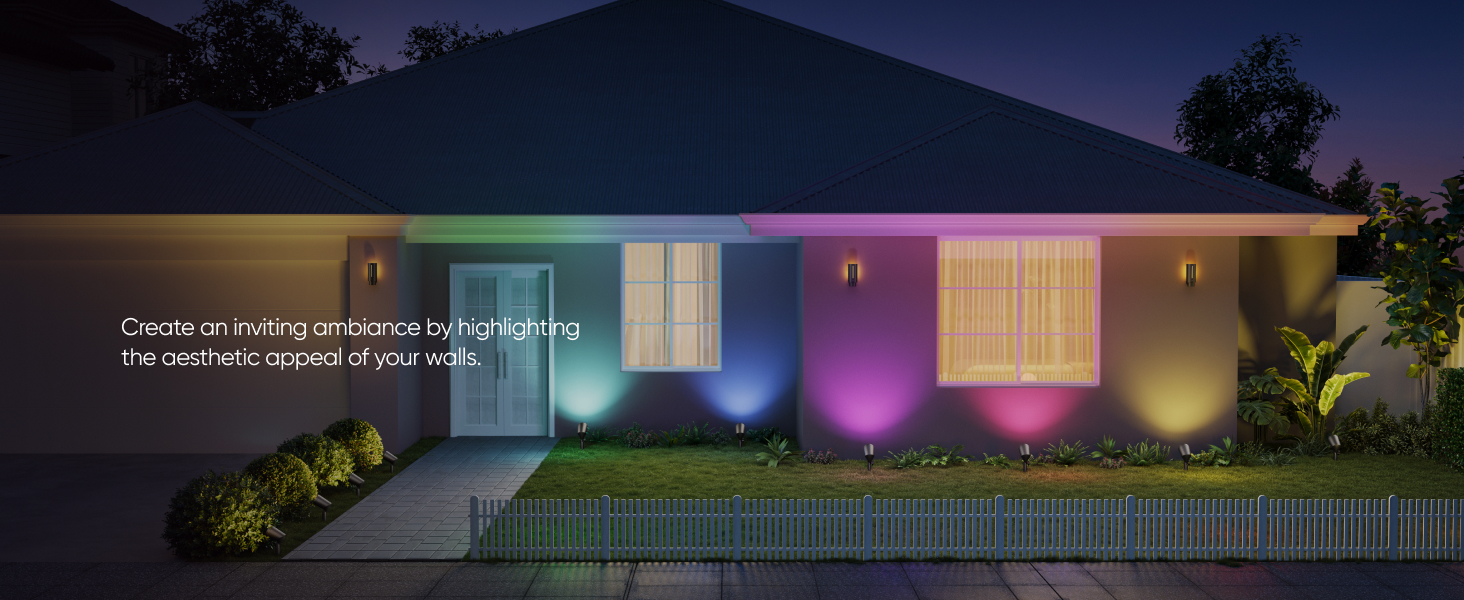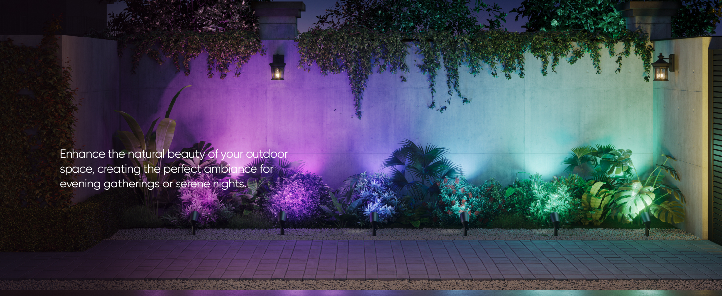 - RGBWW for Stunning Lighting: Featuring RGBWW technology, these spotlights offer vibrant RGB colors and tunable warm-to-cool white LEDs with up to 500 lumens of brightness. Making them ideal for enhancing outdoor spaces with rich colors for everyday ambiance or special events.