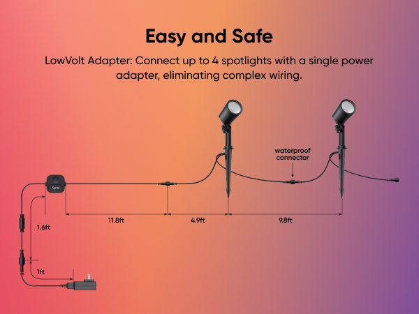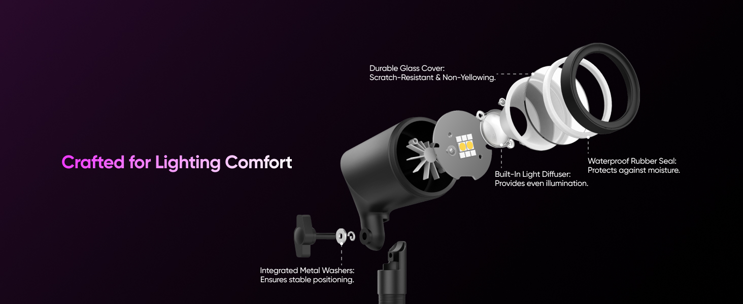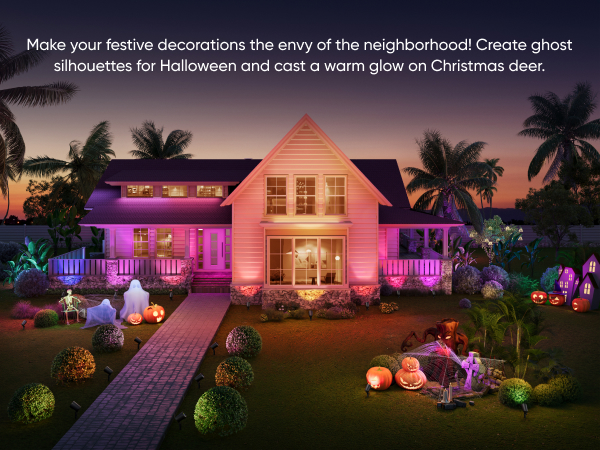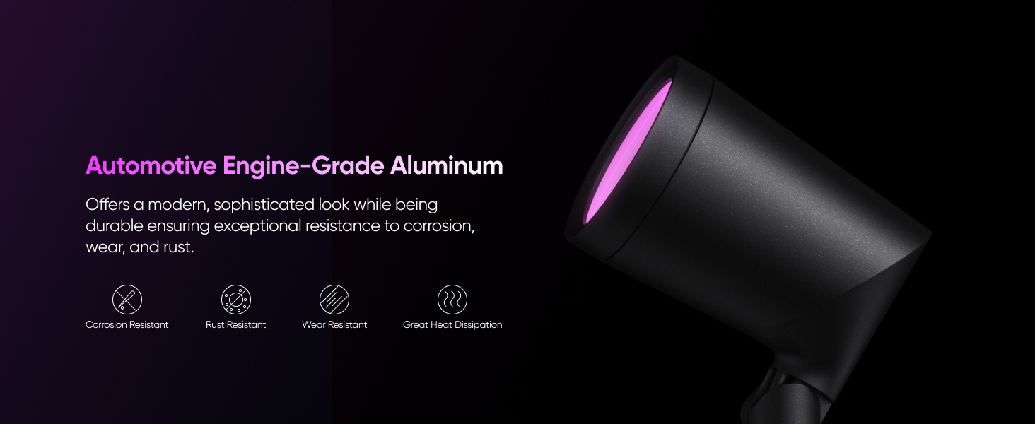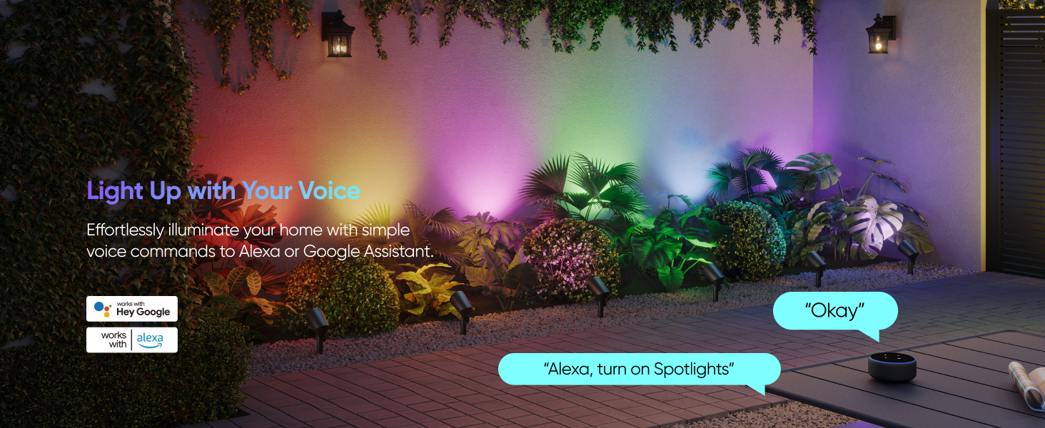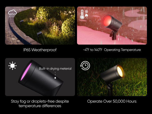 - RGBWW for Stunning Lighting: Featuring RGBWW technology, these spotlights offer vibrant RGB colors and tunable warm-to-cool white LEDs with up to 500 lumens of brightness. Making them ideal for enhancing outdoor spaces with rich colors for everyday ambiance or special events.