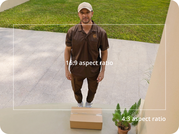 The camera is tilted down 23° for a complete head-to-toe view of visitors, and can be adjusted left