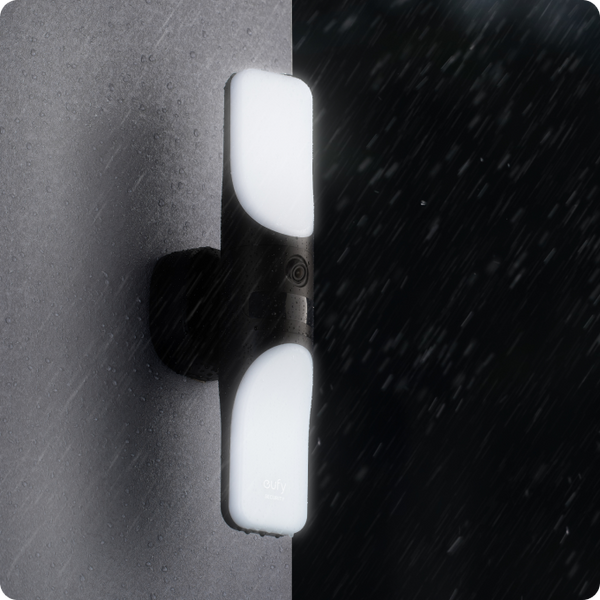 eufy Wired Wall Light Cam works even in rain, snow, and fog with IP65 weather resistance.