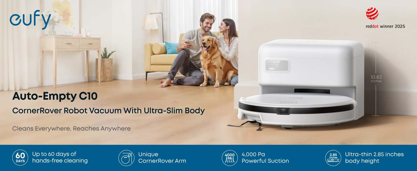 • 2.85-Inch Ultra-Slim Body: C10 features a slim 2.85-inch design, enabling it to reach tighter spaces, including areas under desks and beds. It can also reach more hard-to-access spots and reduce the frequency of manual cleaning required by the user in low-profile furniture spaces.