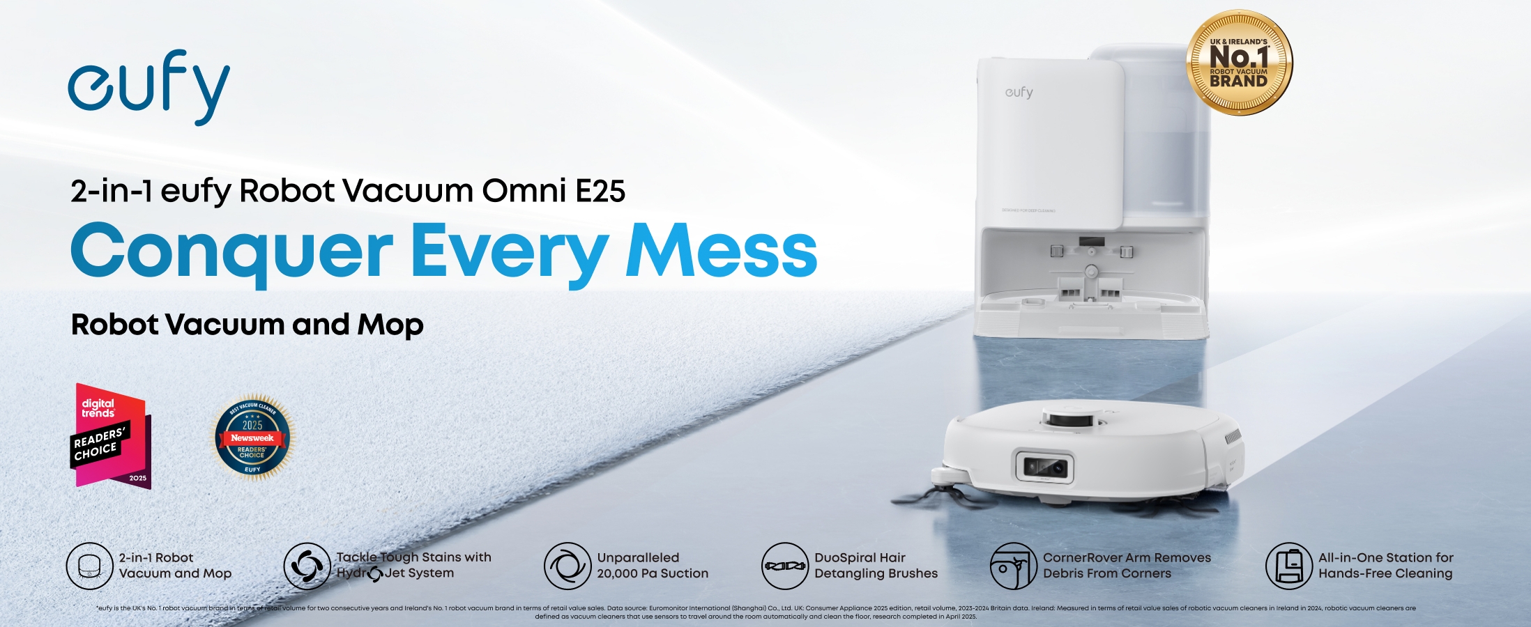 eufy E25 White | Robot Vacuum & Mop, 20KPa Ultra Suction Power